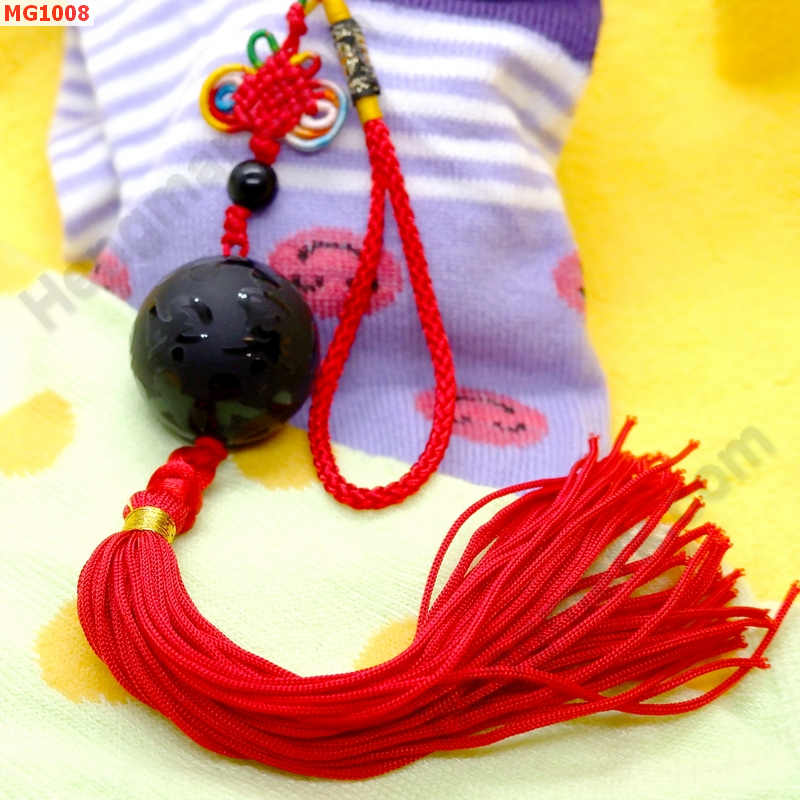 MG1008 : ลูกโลกหินอ๊อพซีเดียน( Obsidian) แกะสลัก แขวนกระเป๋า
