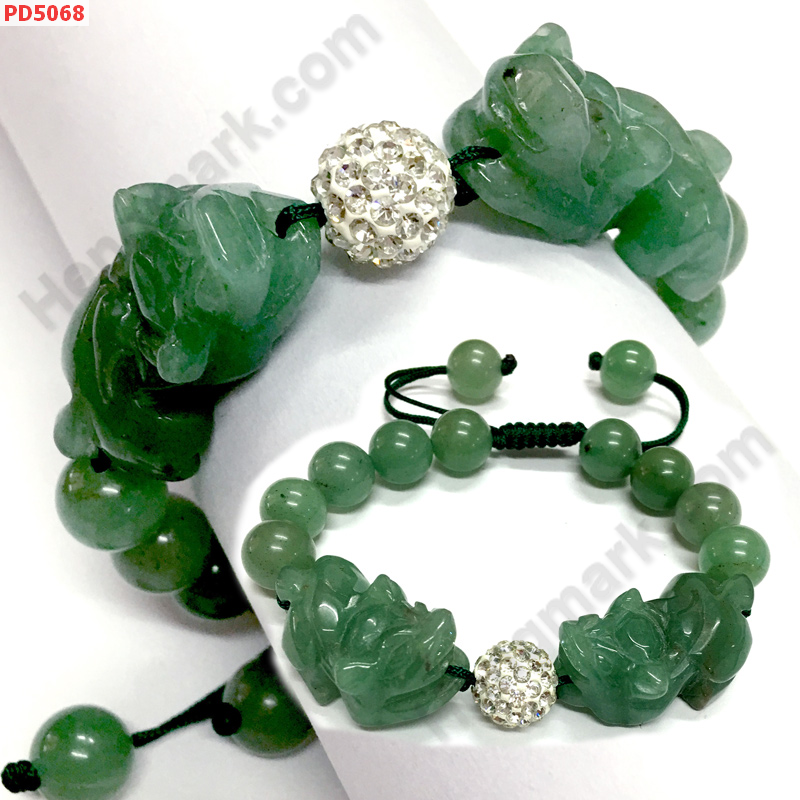 PD5068 : สร้อยข้อมือปี่เซียะคู่ หยกเขียว สร้อยเชือก