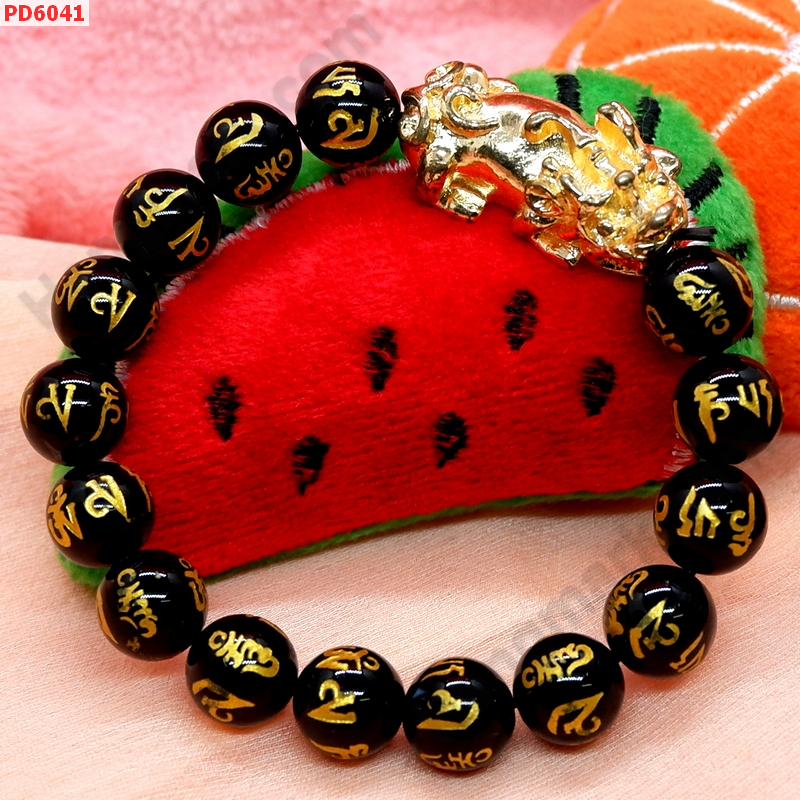 PD6041 : สร้อยข้อมือปี่เซียะสีทอง+คาถาทิเบต