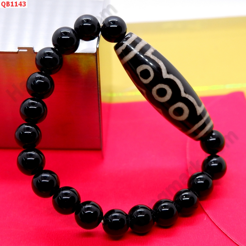QB1143 : สร้อยข้อมือหิน DZI 5 ตา ร้อยกับหินสีดำ